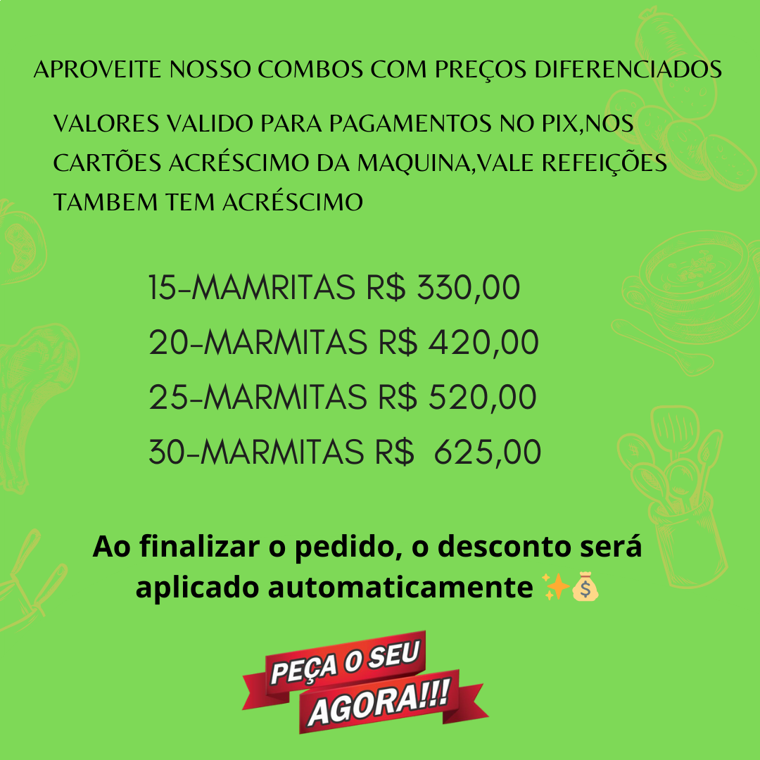 FEIJÃO VERMELHO9PAIO,CARNE DE SOL,BACON) ARROZ INTEGRAL URBANO PURÊ DE BANANA DA TERRA PESO: 300 A 350G SÃO BEM CHEIAS