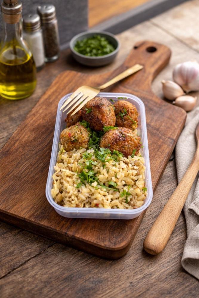 ALMONDEGAS DE LEGUMES/ARROZ INTEGRAL COM LENTILHA