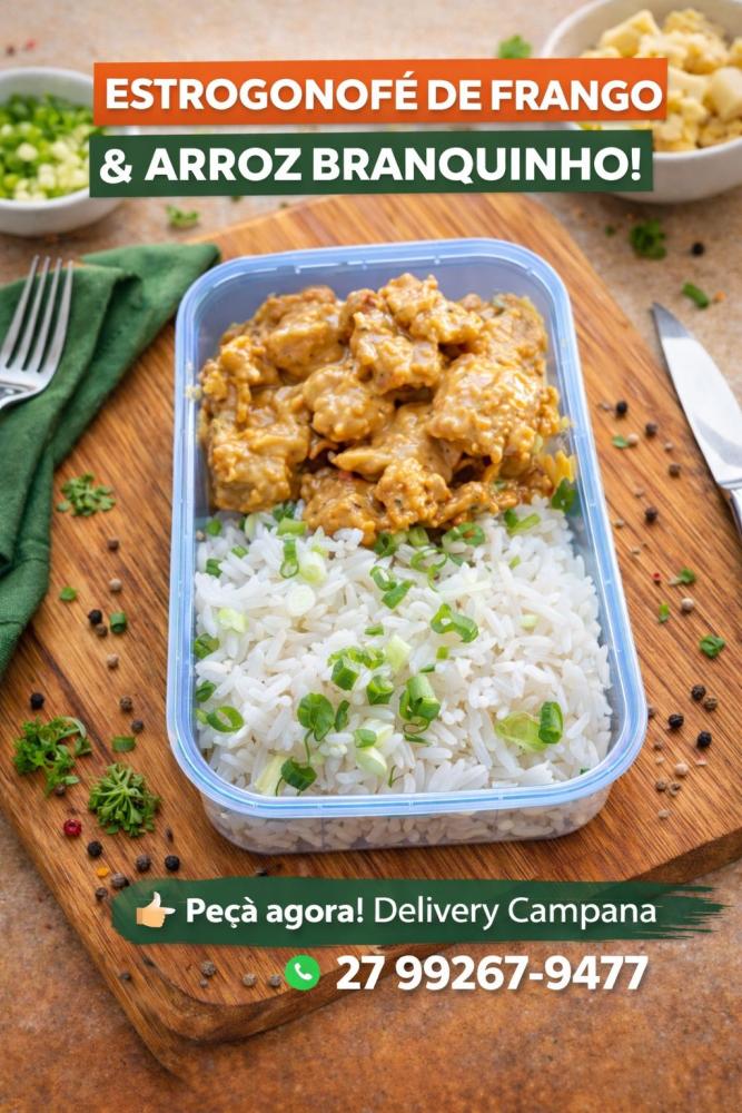 STROGONOFF DE FRANGO E PALMITO/ARROZ BRANCO