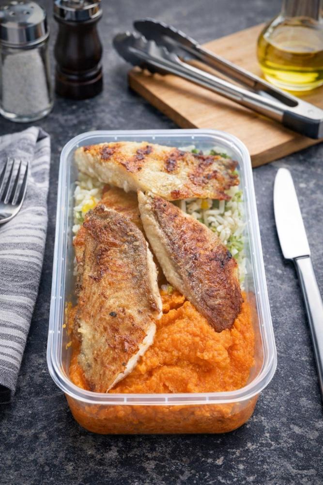 FILÉ TILAPIA GRELHADA,ARROZ COM BROCOLIS,PURE ABOBORA